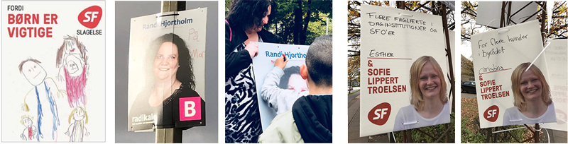 Der er også andre kandidater der har håndskrevne plakater. Det er dem, hvor trykkeriet blev forsinket. Om de virker? Tjah, måske. Fordi de ikke er professionelt lavet, mister de nemt troværdighed, fordi de ikke ligner rigtige valgplakater. Alle tre eksempler er desuden Radikale.